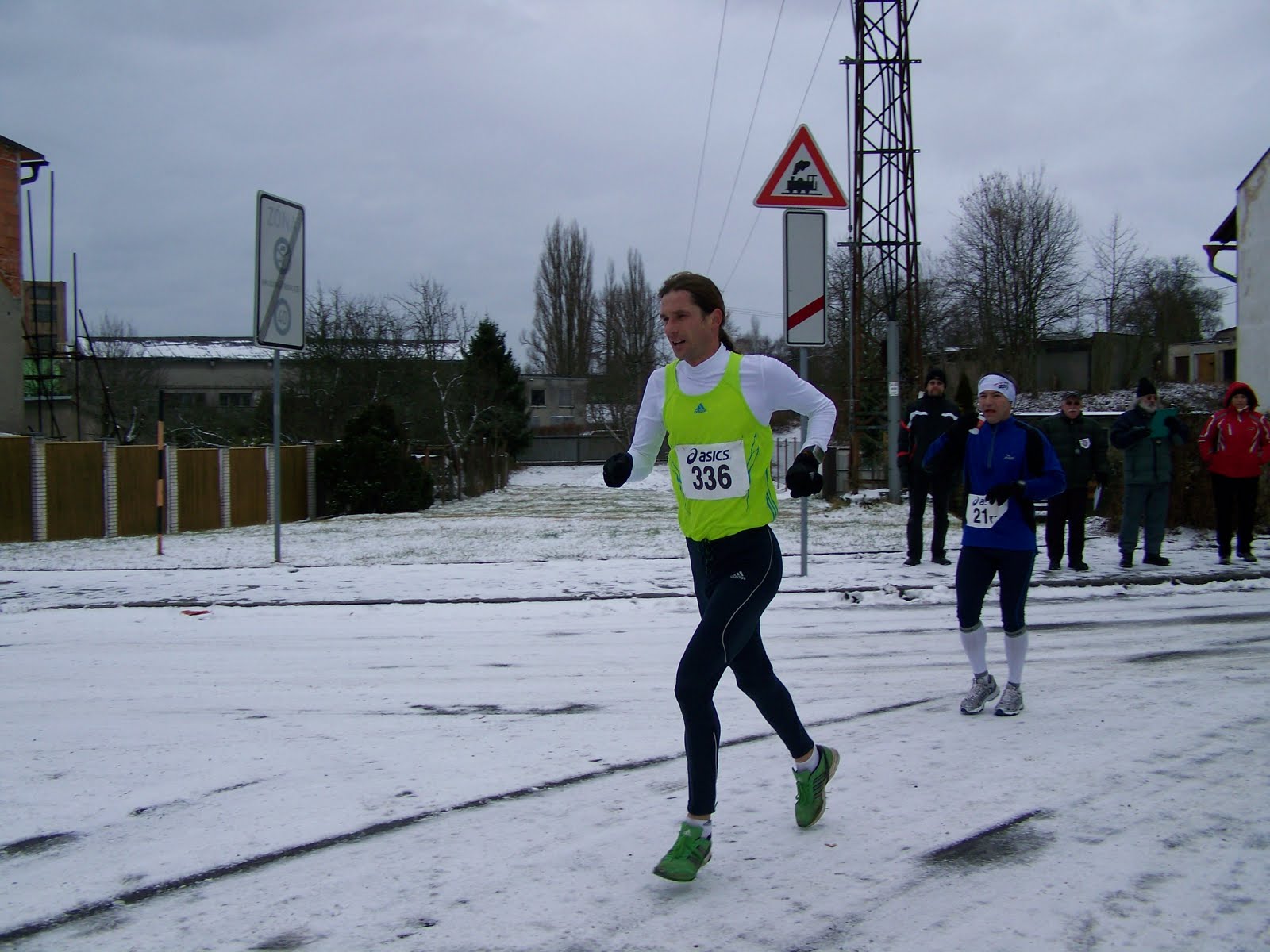 zasněžená a místy to klouzalo. Během závodu foukal protivítr občasně sněžilo.